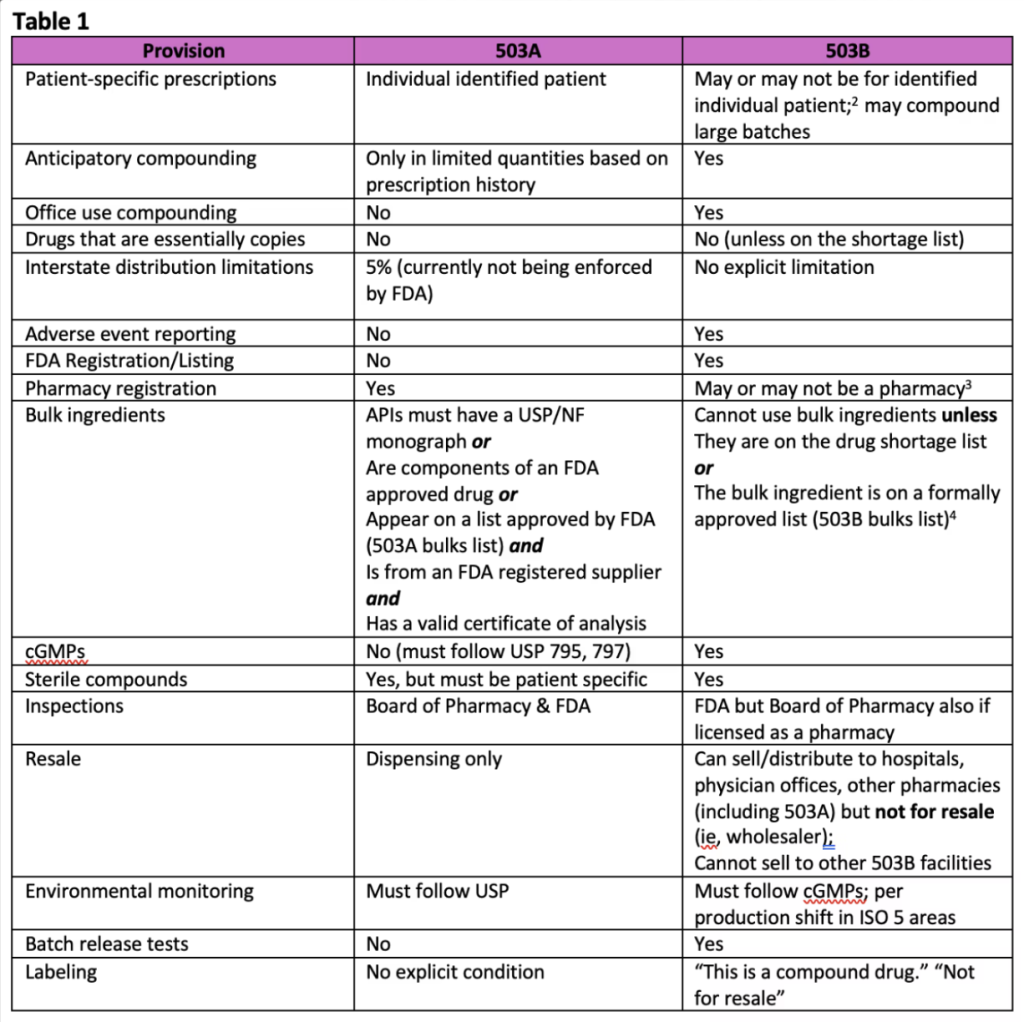 FDA 503A bulks list governing compounding substances