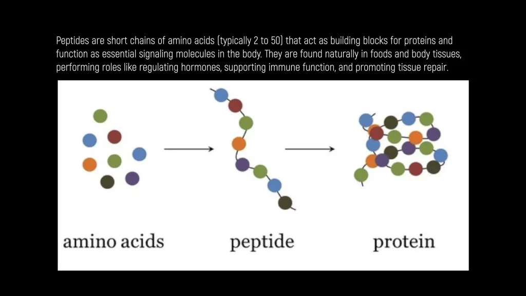 Peptides are short chains of amino acids that act as messengers in the body, helping regulate processes like metabolism, healing, and hormone production.