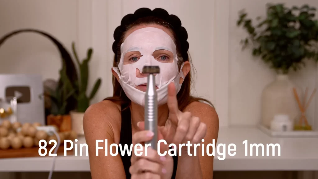 For this routine, I used the Channel Pro Pen with the 82-pin stamping cartridge. Unlike rolling or sliding microneedling devices, stamping pens deliver vertical micro-injuries without dragging the skin. This is ideal for body areas like the hips, thighs, or abdomen where skin is thicker.