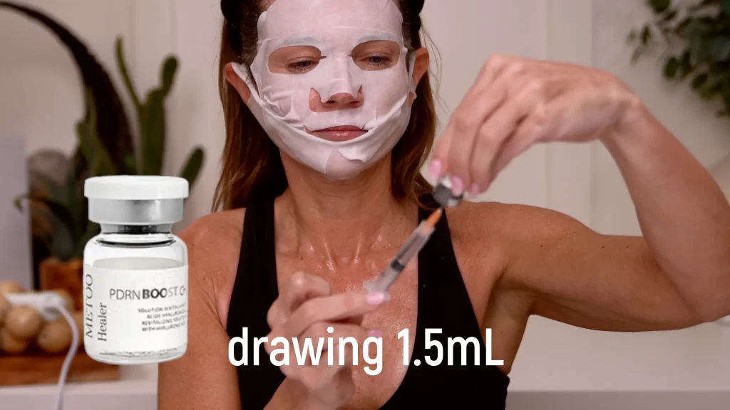 - Draw up 3mL of PDRN serum – 1.5mL per side of hips.